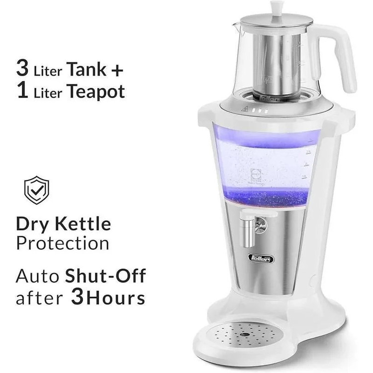 سماور برقی فلر مدل TS390 سفید با ظرفیت 3 لیتر و توان 1800 وات، یکی از بهترین انتخابها برای دم کردن چای خوشطعم و اصیل ایرانی است. این دستگاه با طراحی شیک، بدنه استیل سفید، قوری شیشهای مقاوم و سیستم گرمنگهدارنده تجربهای متفاوت از نوشیدن چای را به شما هدیه میدهد.