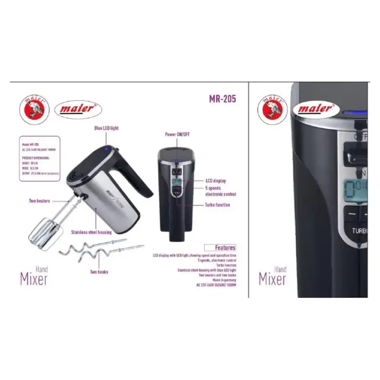 همزن برقی دیجیتال بدنه استیل تمام حرفهای مایر مدل um-205