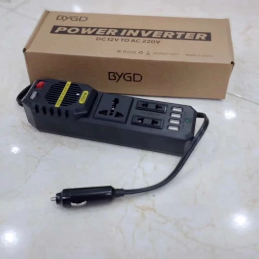این محصول یک اینورتر خودرو از برند BYGD است که روی جعبه آن عبارت POWER INVERTER و مشخصه DC 12V TO AC 220V درج شده است.
