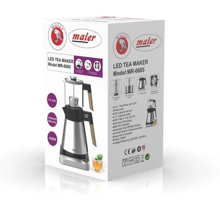 چایساز مایر مدل 6685 یکی از محصولات جدید و مدرن برند مایر است که با طراحی روهمی و پنل لمسی عرضه شده است. این دستگاه با بدنه استیل ضدزنگ و قوری پیرکس مقاوم، دمآوری عالی چای و جوش سریع آب را تضمین میکند. قابلیت تنظیم دما، گرم نگهدارنده و سیستم قطع کن اتوماتیک، استفاده روزانه را برای خانوادهها راحت و مطمئن میسازد.